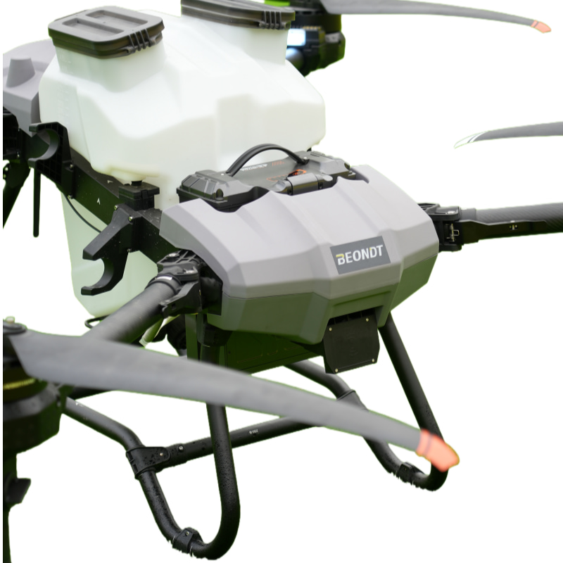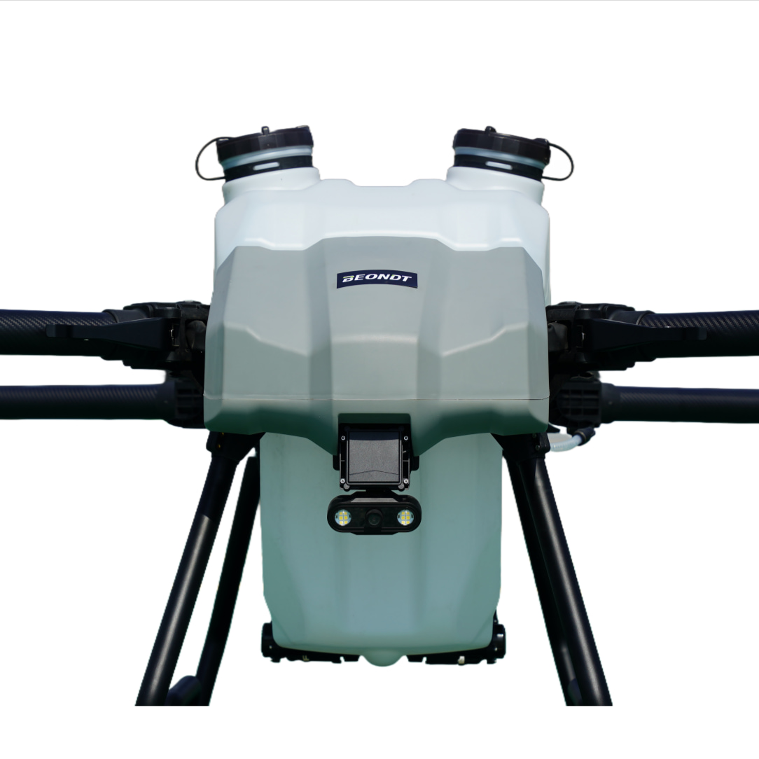內建整合式飛控、整合式電控板、雙天線RTK模組、GPS高精準度秤重模組、雙管流量計,整機電子設備防水等級IP67
